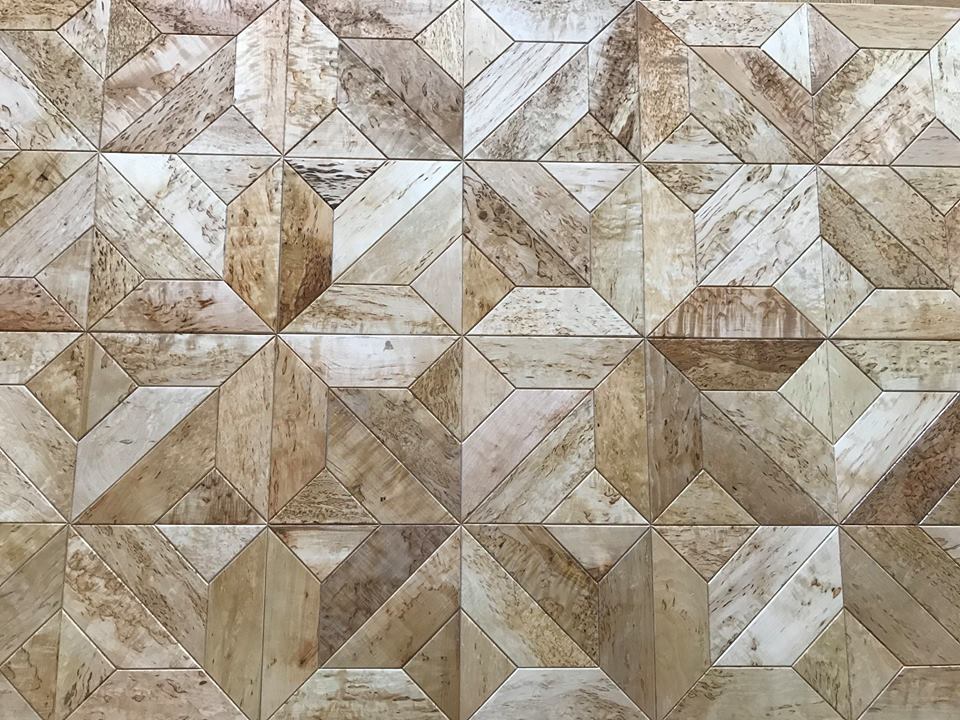 კარელიის არყის ხე, გეომეტრიული ფიგურა. გეომეტრიული წყობა, რომელიც წლებია პოპულარულობას არ კარგავს და დროის მიუხედავად კვლავ ტოპ-პოზიციას არ თმობს. "ფასკები" კიდევ უფრო გამოკვეთს მასალის ინდივიდუალურობას.