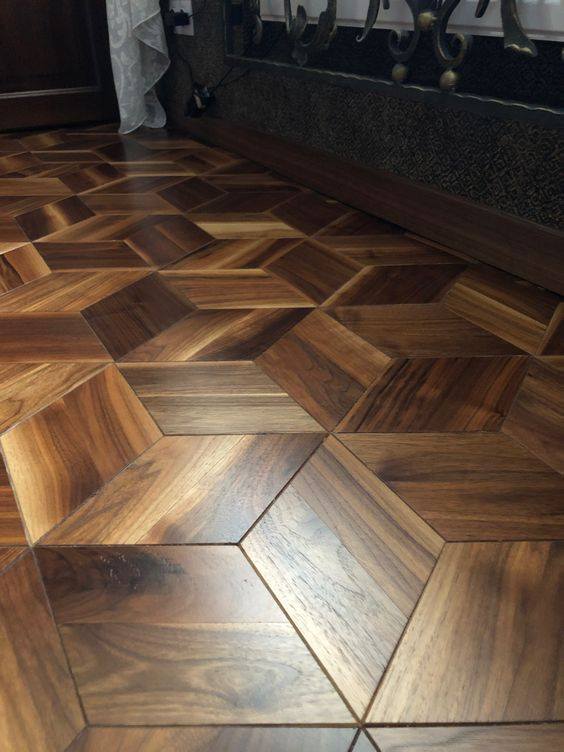 მასიური კაკალი, გეომეტრიული ფიგურა, რომბი. კაკალის მასალა გამოირჩევა ორიგინალური ხის ფაქტურით და ბუნებრივი მუქი ფერით, რომელიც უდაოდ ძალიან ეფექტურია. რომბის წყობა "ფასკებით" ნამდვილად ძალიან ლამაზი ფიგურაა, რომელიც საერთო სივრცეს უფრო დიდად წარმოაჩენს.