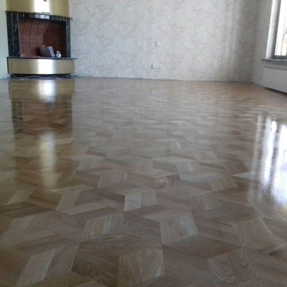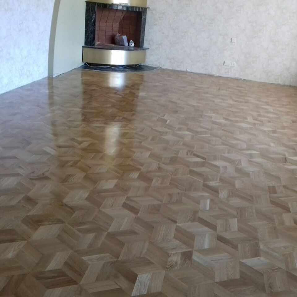 მასიური მუხა, რომბის წყობა. გეომეტრიულ წყობაში ერთ-ერთი პოპულარული წყობაა. უკვე ათწლეულებია მოწინავე ადგილს იკავებს. ოთახის სივრცეს უფრო მასშტაბურას წარმოედგენს, ქმნის 3 გამზომილების ეფექტს.